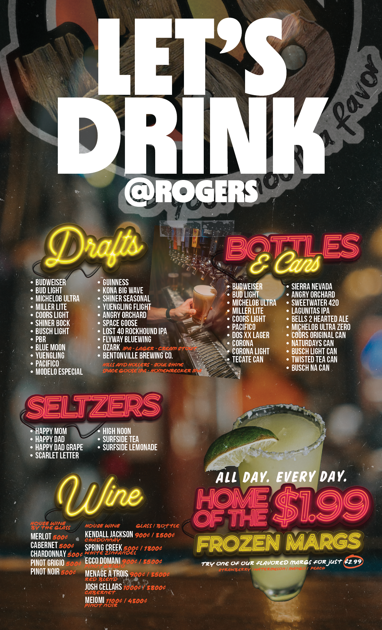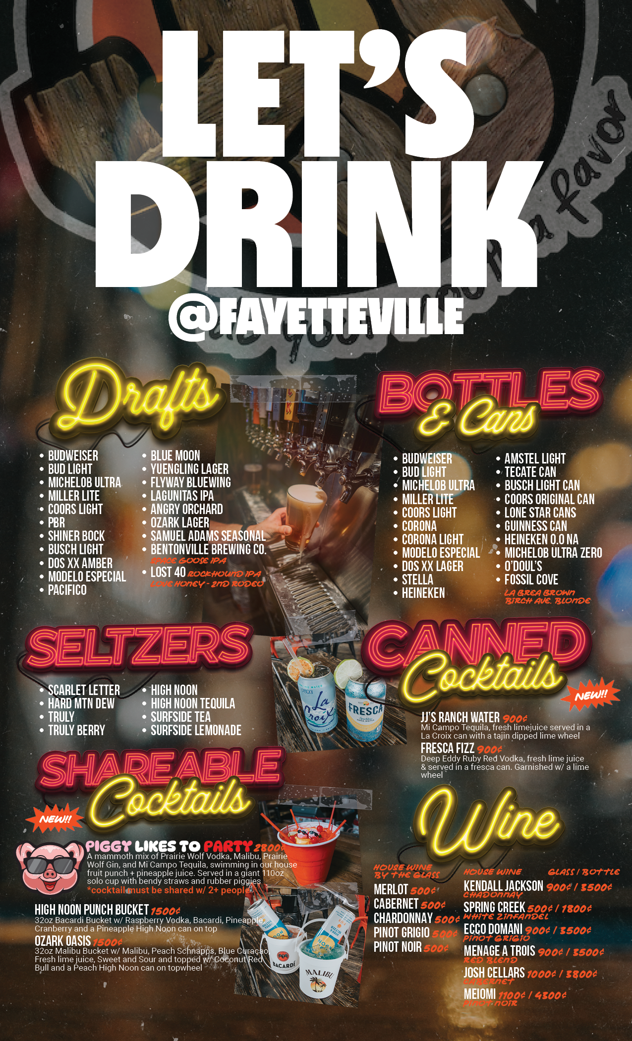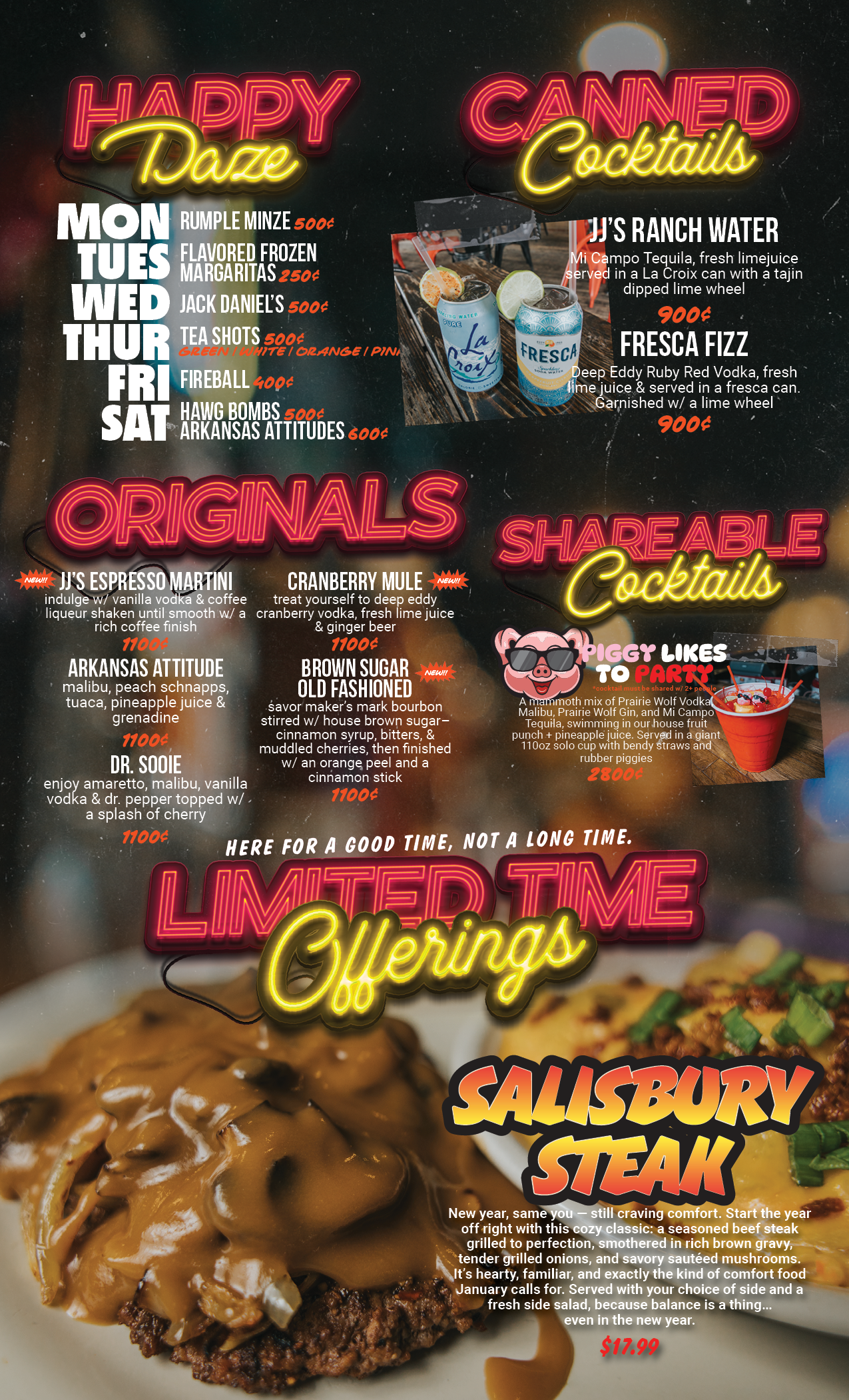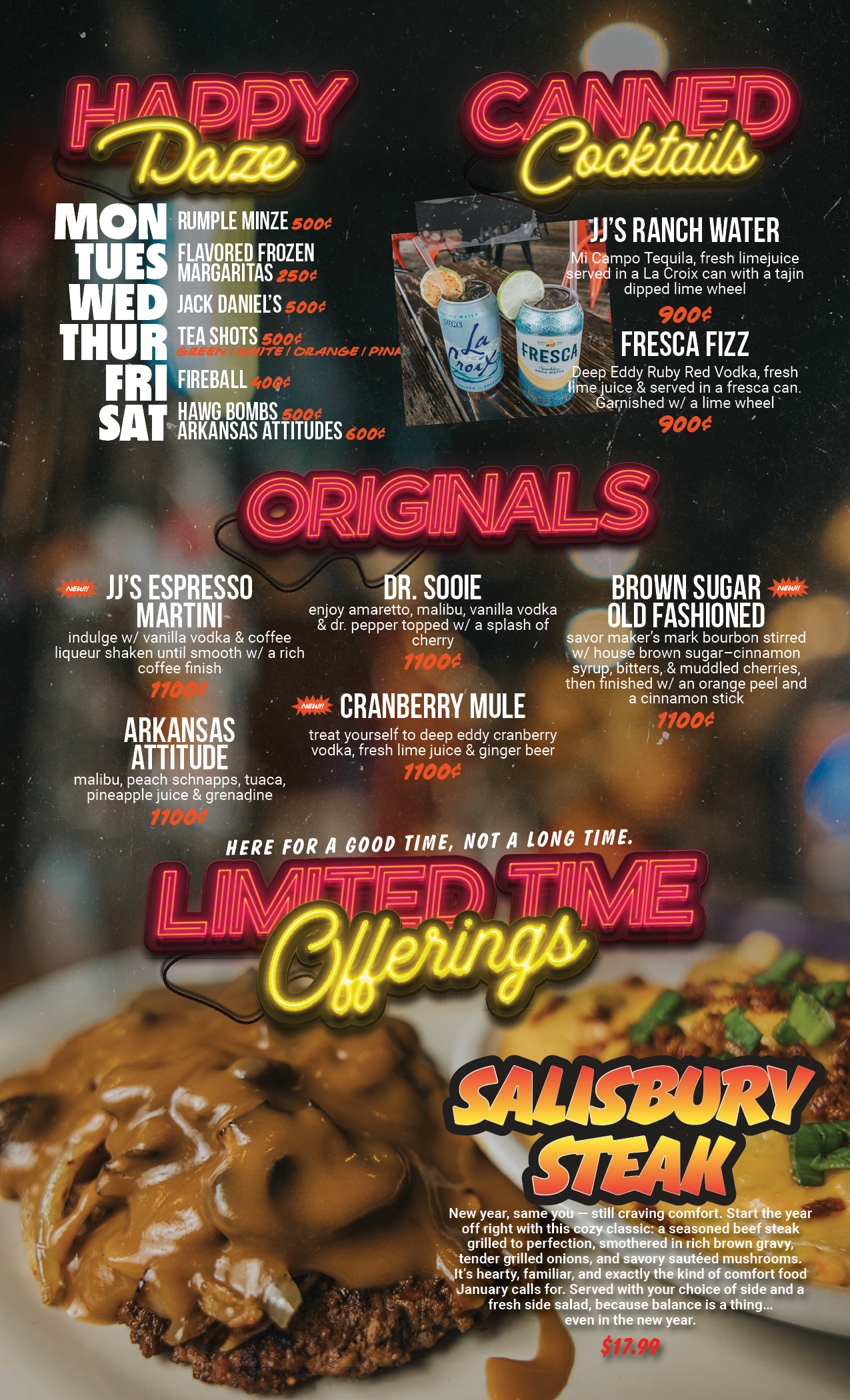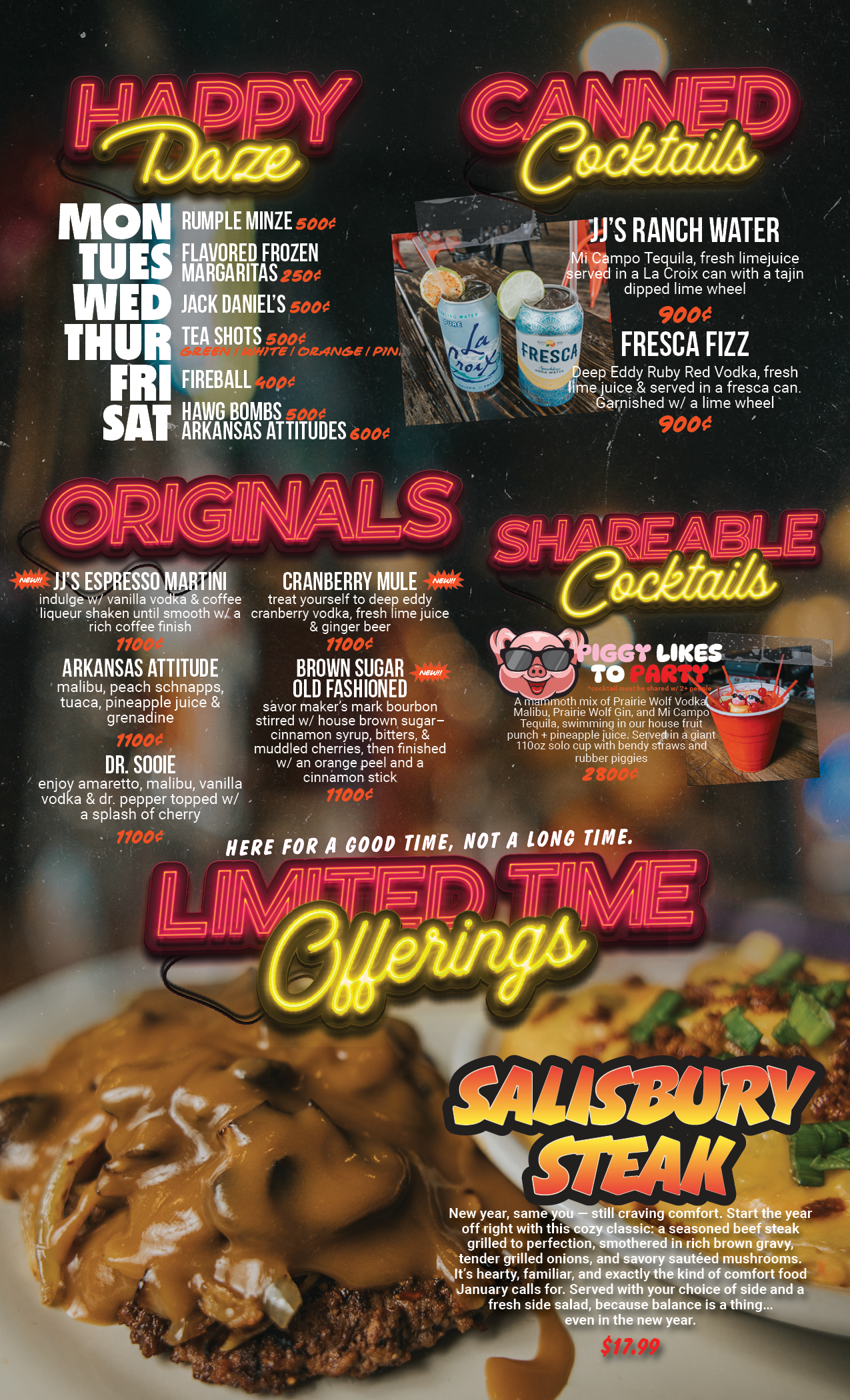 Choose your location on the left to see their drink menu! JJ's Rogers JJ's Fayetteville JJ's Bella Vista JJ's Conway JJ's Fort Smith JJ's Dickson JJ's Springdale JJ's Rogers JJ's Fayetteville JJ's Bella Vista JJ's Conway JJ's Fort Smith JJ's Dickson JJ's Springdale